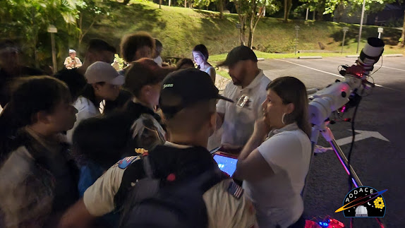 Al finalizar del recorrido por las mesas educativas, los participantes tuvieron la oportunidad de observar el cielo nocturno a través de los telescopios ópticos de AODACE. La observación incluyó la Luna en su fase creciente, el cúmulo del pesebre M44, el cúmulo globular M3, y varias estrellas.
